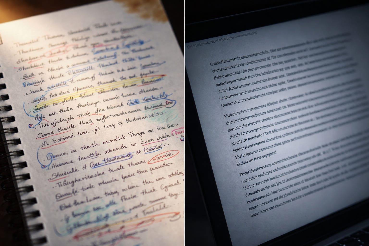 AI generates vast quantities of text instantaneously, drawing from patterns in its training data. You generate thoughts from accumulated experiences and memories, select some, commit them to the page.