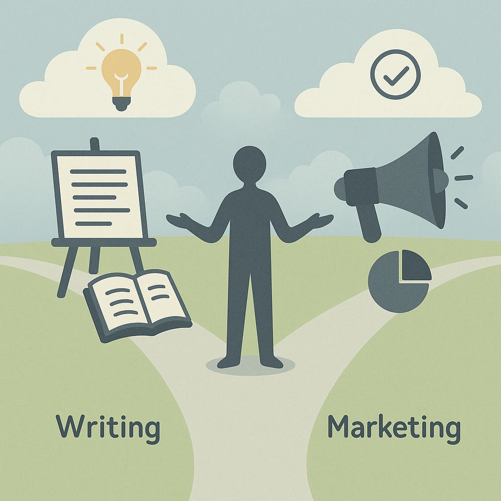 So what do I do? Write a book about it, just like I did for writing. The writer dissolved. Now I'm doing the same for marketing. Let the marketer fade so the marketing can flow. Same principles, different application.